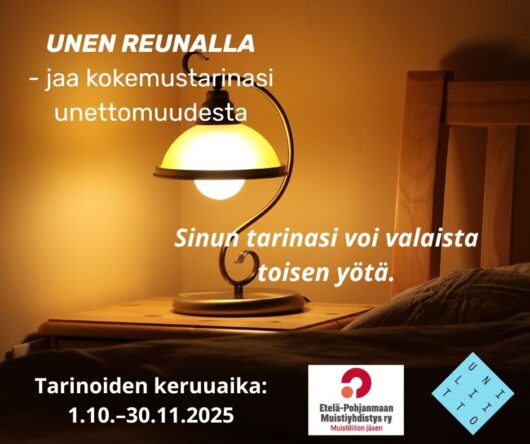 Unen reunalla -kokemustarinoiden keruun järjestävät Etelä-Pohjanmaan Muistiyhdistys ry:n URHO-hanke ja Uniliitto