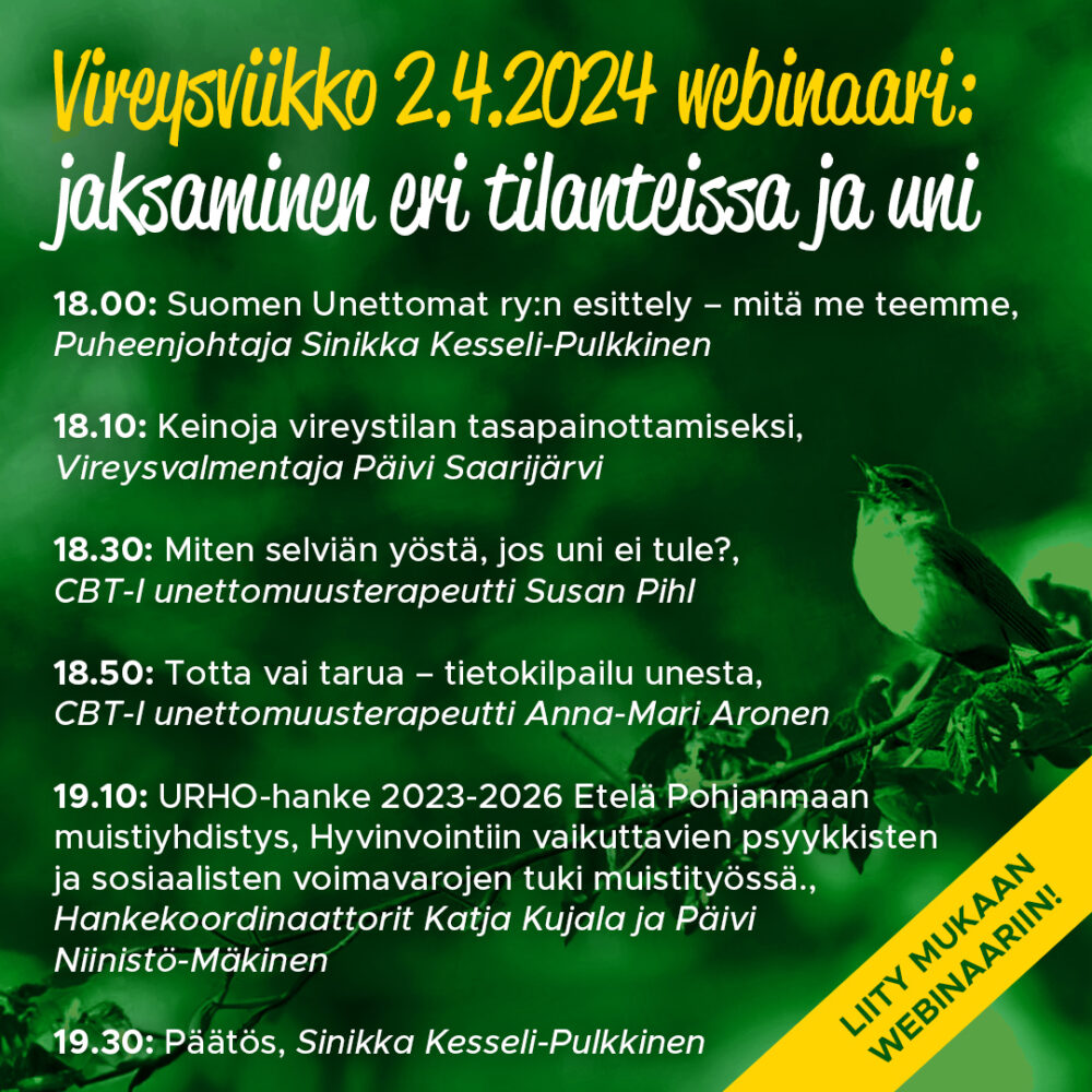 Tilaisuuden järjestää Suomen Unettomat ry.